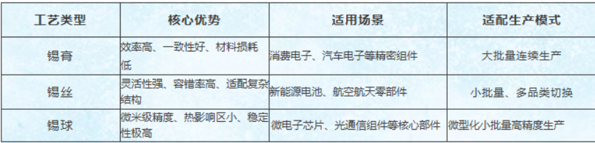 深耕行业多年,我们发现:企业在激光焊接工艺选型时,常陷入“试错成本高、适配性差”的困境。为此,我们整合核心技术资源,推出锡膏、锡丝、锡球三大激光焊接工艺,并整理出完整的选型指南,帮你快速匹配最优方案,避开选型坑!简单来说:大批量标准件选锡膏,异形多品种选锡丝,微精高可靠选锡球。下面,先带大家逐一解锁这三大“焊接利器”,再教你精准选型。