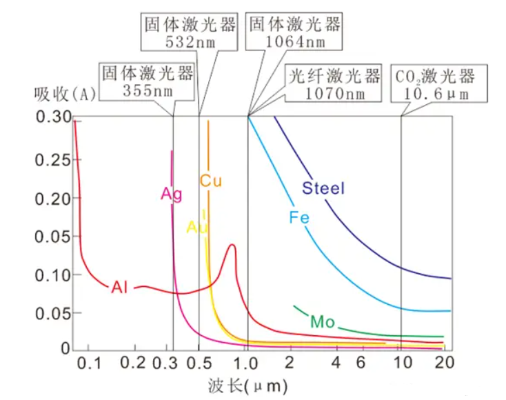 波长不仅决定了激光的“身份”,更关键的是决定了不同材料对它的吸收率。